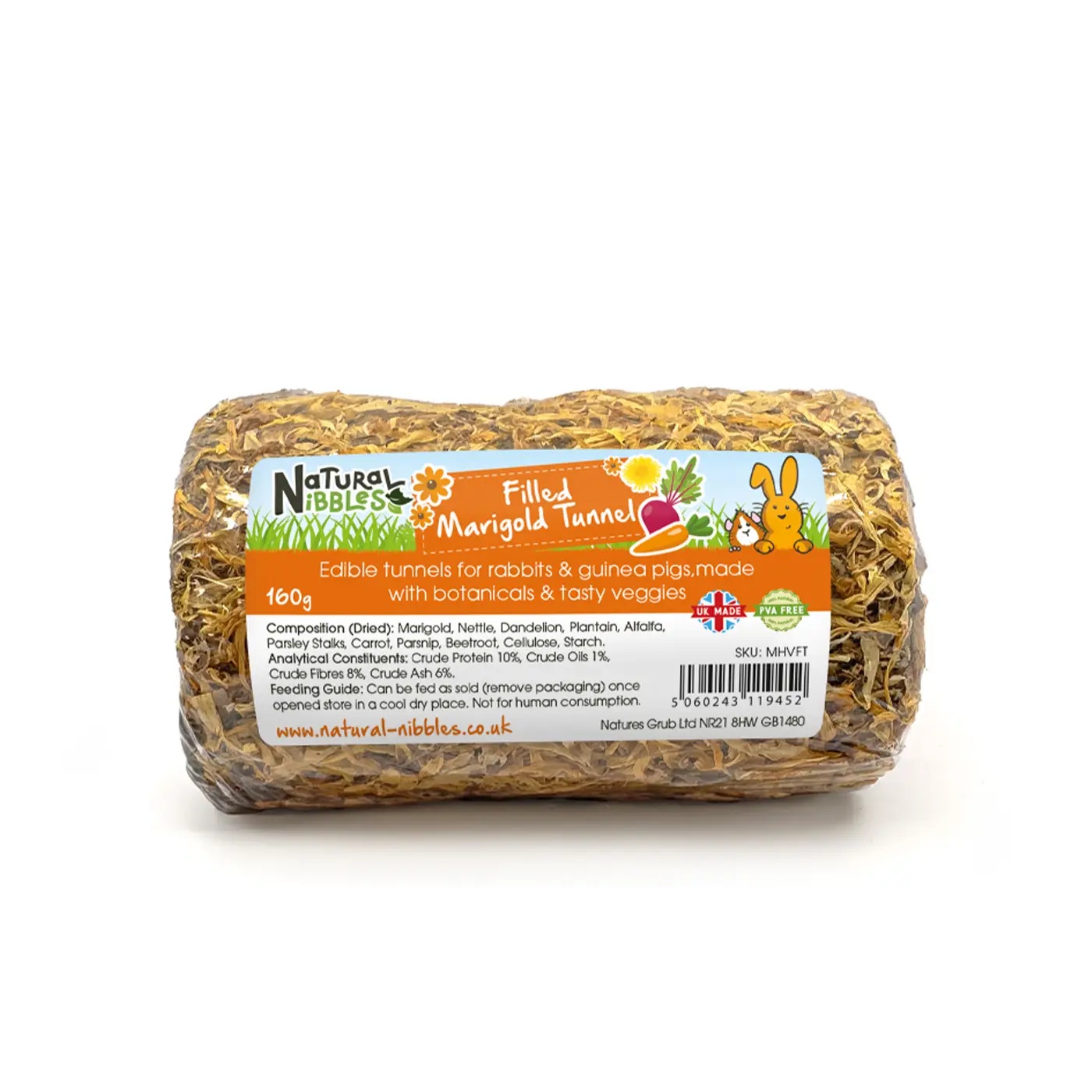 A 100% edible, herb-coated tunnel packed with dried veggies and nettle — the perfect boredom-busting treat for small animals.